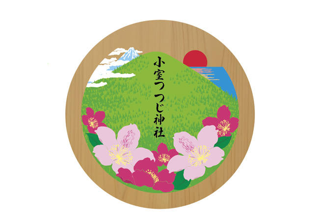 歴史ある神社の雰囲気を損なわないよう、日本画のタッチを取り入れつつ、観光地ならではの魅力として、小室山や富士山、つつじの花などをモチーフに、明るくカラフルな配色で仕上げました。